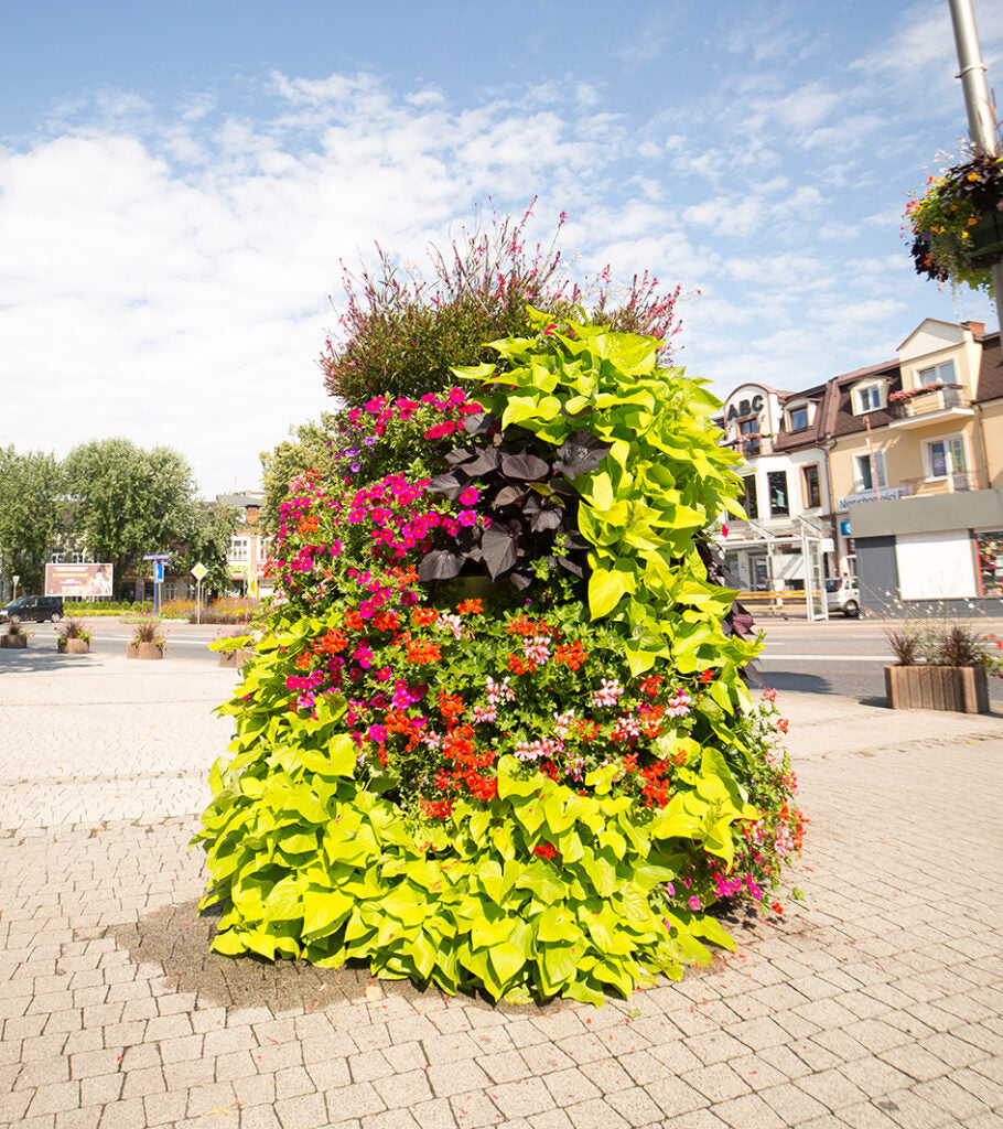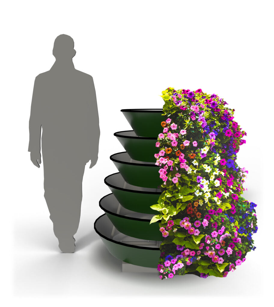 The Belle Fleur Tower is chic and versatile, perfectly sized for boutique storefronts, patios, and restaurant terraces. It offers romantic floral abundance in a compact form.